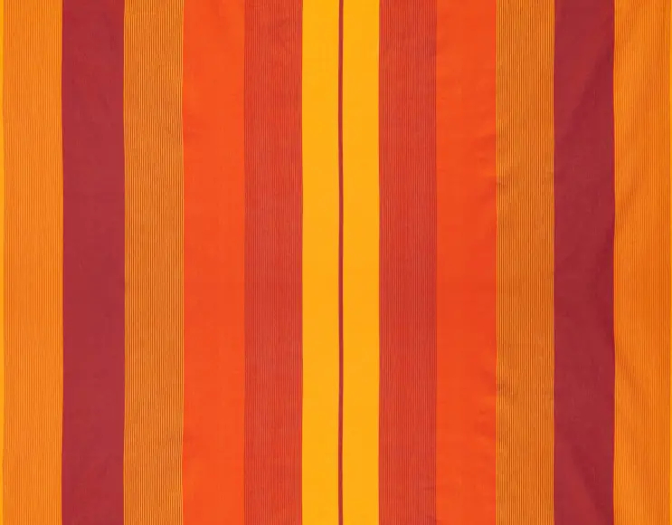 Der Stoff ist eine Farbexplosion: Rot, Orange und Gelb bringen Freude!